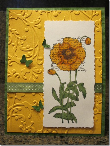I love this stamp from Penny Black, the image was colored with copics. The butterflies are from Memory box, and the ribbon is from PTI.